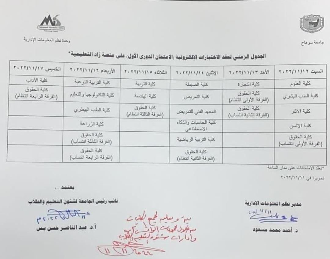 ابناؤنا الطلاب الرجاء العلم ان المنصة ستفتح اختبارات كلية التجارة للفرق الاربعة للطلاب الذين لم يتمكنوا من دخول الامتحانات امس .. الجمعة ..وستكون المنصة متاحة لكلية تجارة طوال ٢٤ ساعة ليوم الاحد ١٣ نوفمبر …