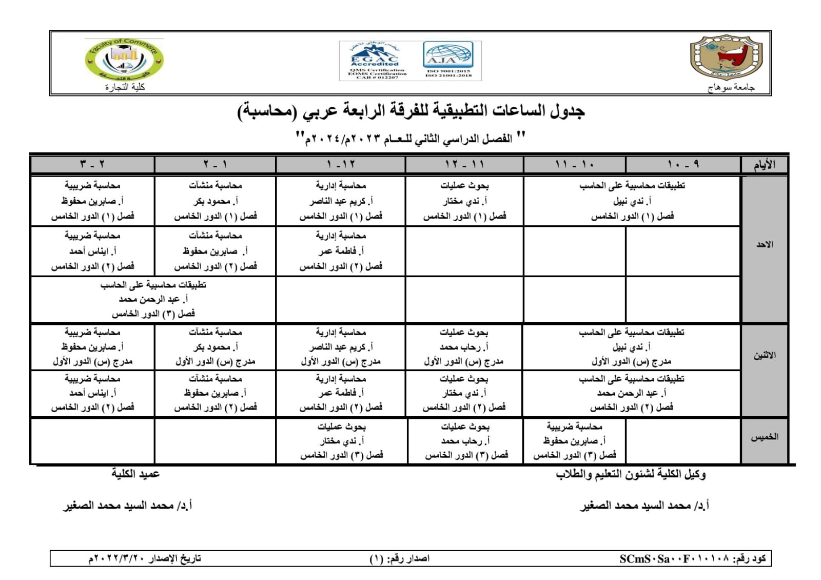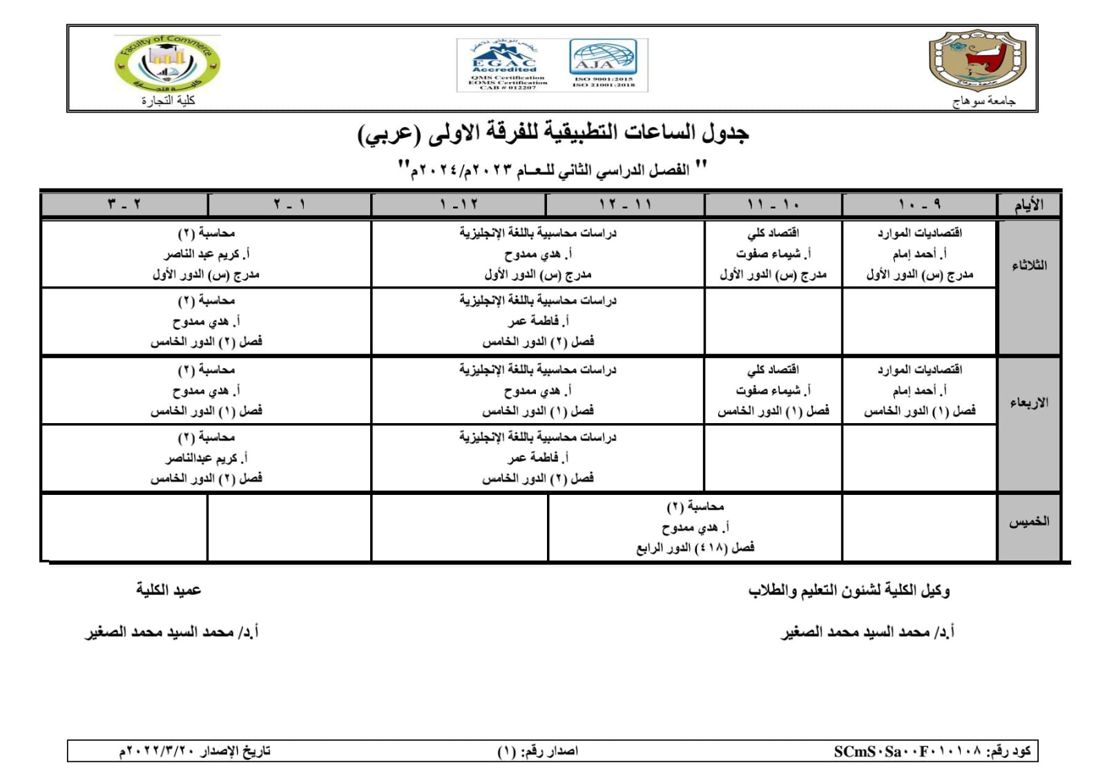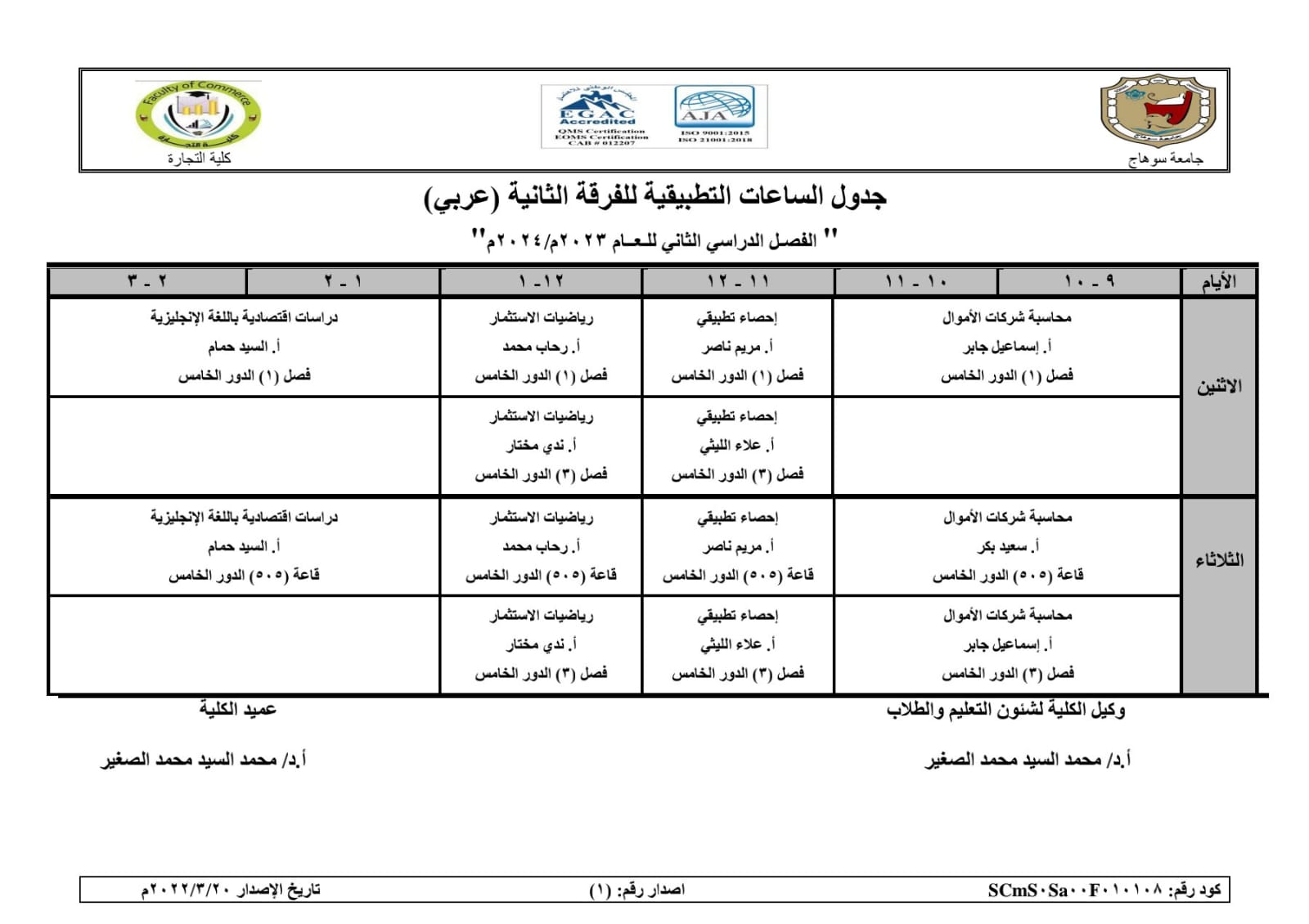 جداول الساعات التطبيقية الفصل الدراسي الثاني للعام الجامعي 2024/2023 لطلاب انتظام وانتساب جميع الفرق