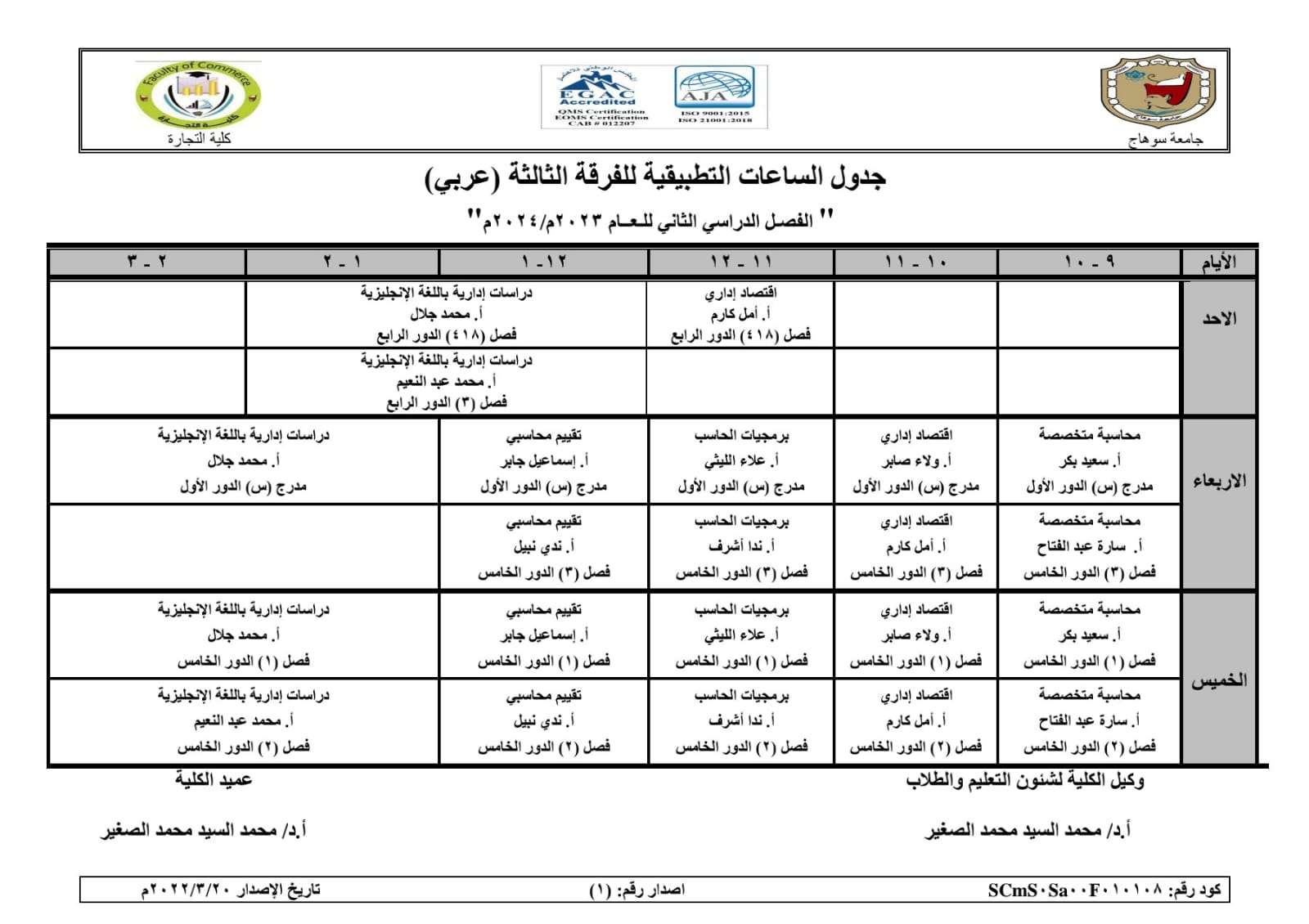 الرئيسية » جداول الساعات التطبيقية الفصل الدراسي الثاني للعام الجامعي 2024/2023 لطلاب انتظام وانتساب جميع الفرق