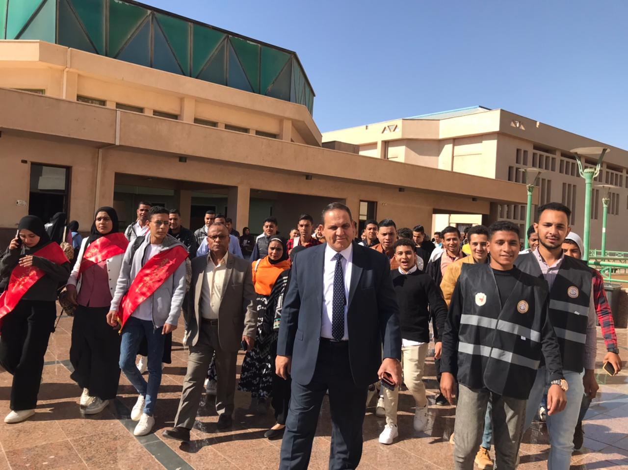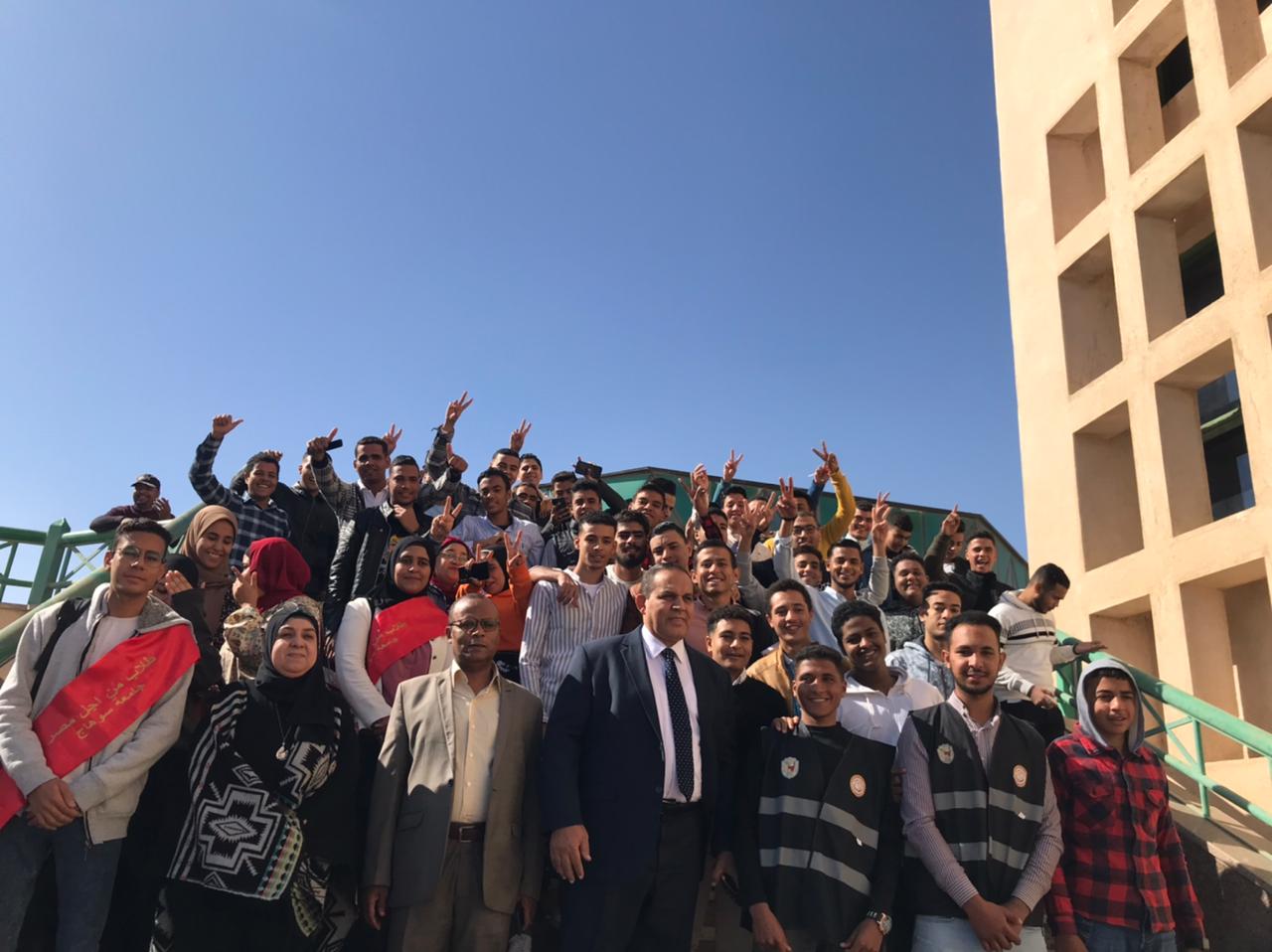 بقيادة السيد الاستاذ الدكتور محمد السيد الصغير أبوزهاد عميد الكلية والسيد الدكتور/ ابراهيم عبدالحميد وكيل الكلية لشئون البيئة وخدمة المجتمع السيدة الأستاذة / نجوى محمد المهدي أمين الكلية