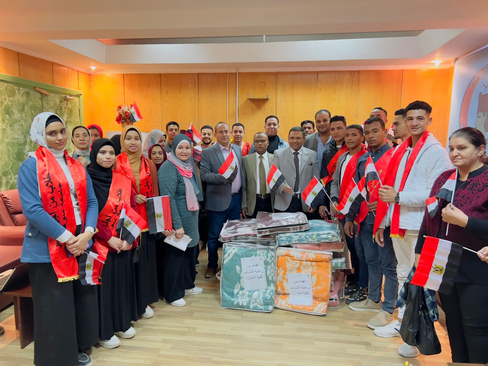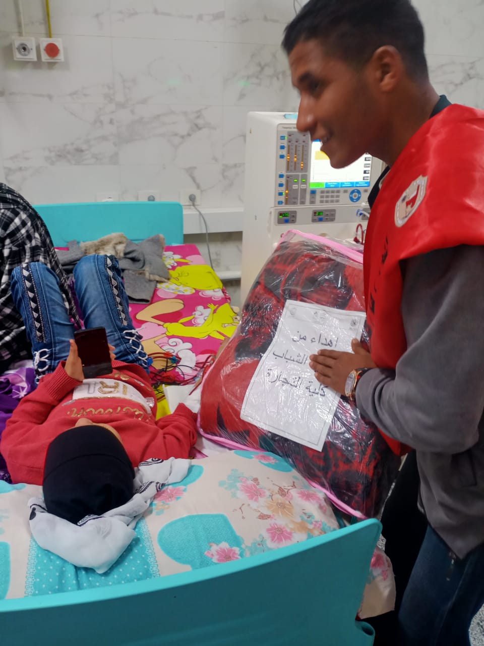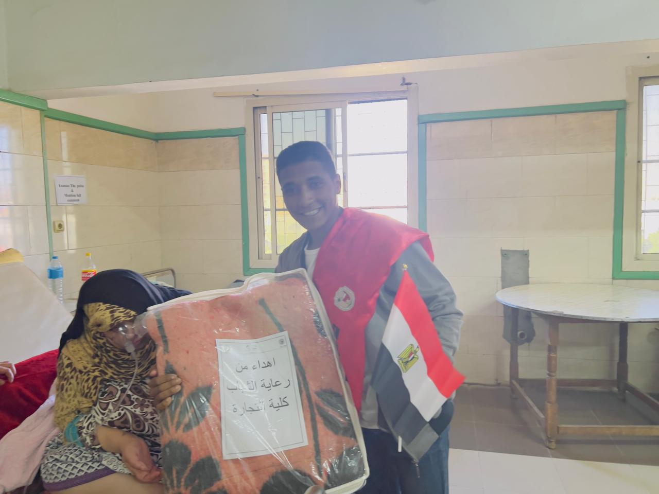 برعاية كريمة من سعادة الاستاذ الدكتور/ حسان النعماني رئيس الجامعة وسعادة الاستاذ الدكتور /خالد عمران نائب رئيس الجامعة لشئون خدمة المجتمع وتنمية البيئة وسعادة الاستاذ الدكتور/ عبد الناصر يس نائب رئيس الجامعة لشئون التعليم والطلاب وسعادة الاستاذ الدكتور/ محمد السيد الصغير أبوزهاد عميد الكلية وبالتنسيق مع الاستاذ الدكتور / الشاذلي صالح موسي وكيل كلية الطب . نظمت كلية التجارة زيارة لمرضي المستشفي الجامعي بسوهاج برئاسة الدكتور/ إبراهيم عبد الحميد وكيل الكلية لشئون خدمة المجتمع ووفد من رعاية الشباب وطلاب من أجل مصر بزيارة لمرضي المستشفي الجامعي بسوهاج لتقديم الدعم المعنوي والتخفيف عنهم وتقديم مجموعة من الاغطية الشتوية ، وقد كان في استقبال الوفد الاستاذ الدكتور/ أحمد النحاس مدير المستشفيات الجامعية بسوهاج والذي اشاد بالزيارة وقدم التسهيلات اللازمة لانجاحها