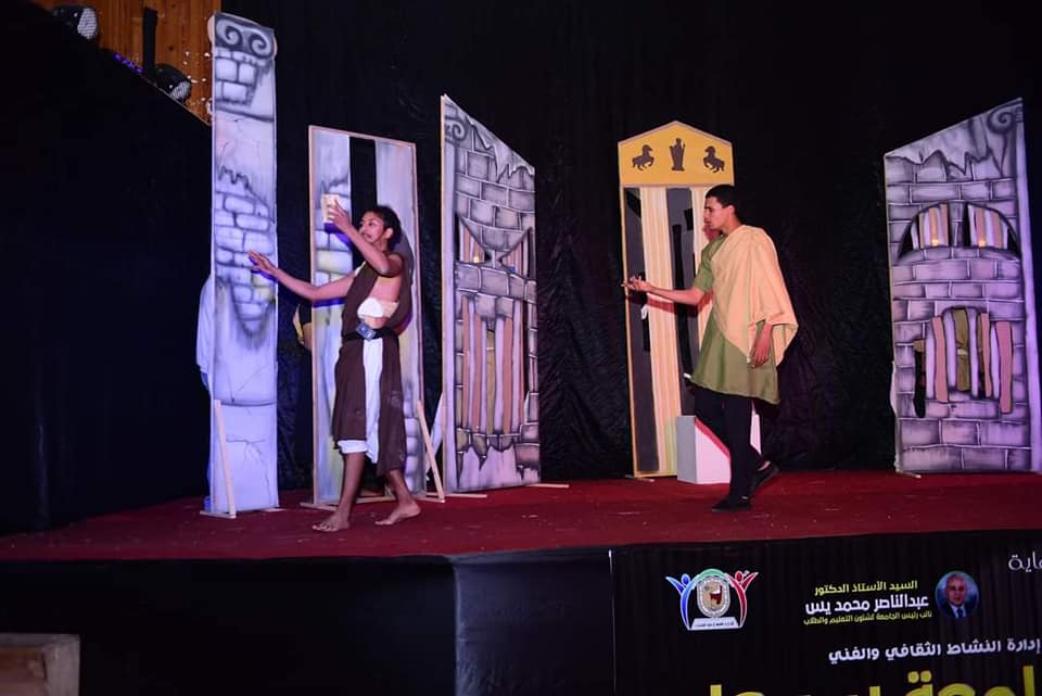 تم المشاركة فى مهرجان تياترو جامعة سوهاج الموسم الخامس بالعرض المسرحي انسواهيروسترات للمخرج دياب كمال * وتحت اشراف اسرة رعاية الشباب..